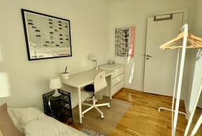 I am renting out a bedroom, in a fully furnished 121m2 spacious flat. The room is roughly 10m2, with access to large common areas, including living room, kitchen, hallways, bathroom and balcony. In the kitchen you will find all necessary utensils, including a dish washer.