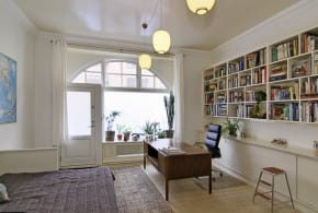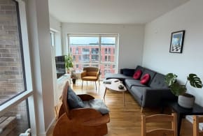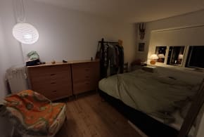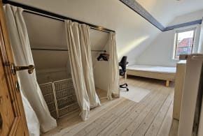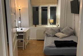 Rooms come with a comfortable 120x200 cm bed, a sofa and a large 250 cm closet. The smallest room and most quiet room has a view to the garden. There is a huge balcony and a shared park. The rooms are rented as you see in the pictures. Click on description to see which room it belongs to. Smaller items you bring, like desks, can be placed in the rooms but I cannot offer storage for either your own furniture nor remove my own. There is a desk/ dining table in the shared area where you can dine or use your laptop.