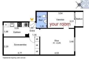 Rent is 4000 kr. pr. m. (everything included, also Wi Fi).