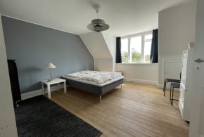 Room 2 is approx. 14 sqm and costs 6000 DKK/monthly. It is a super cozy room with slanted walls.